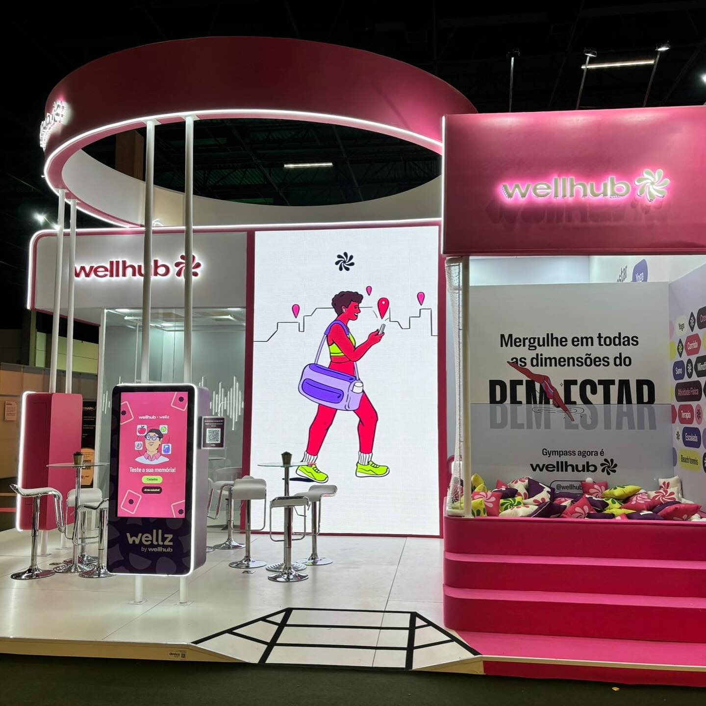 A Confetti criou um estande leve e cheio de vida para a Wellhub (Gympass) no CONARH. Piscina instagramável, estúdio de podcast com a presença de personalidades em transmissões ao vivo, totens interativos e café para boas conversas — tudo pensado para traduzir o propósito da marca e inspirar o bem-estar de forma divertida e humana.